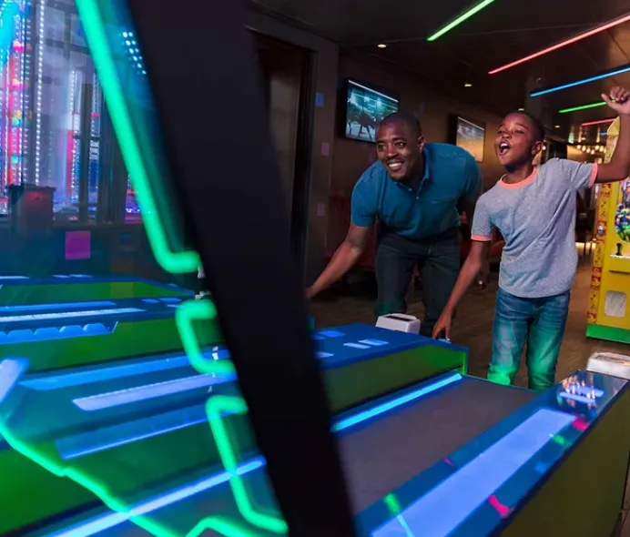 There’s a firm NO to FOMO onboard Independence of the Seas®. Hang ten on the FlowRider® surf simulator. Go head to head in a glow-in-the-dark laser tag clash in Battle for Planet Z®. And score game-changing grub at Playmakers℠Sports Bar & Arcade. From next-level thrills to lowkey chill, celebrate each day at sea exactly how you want.